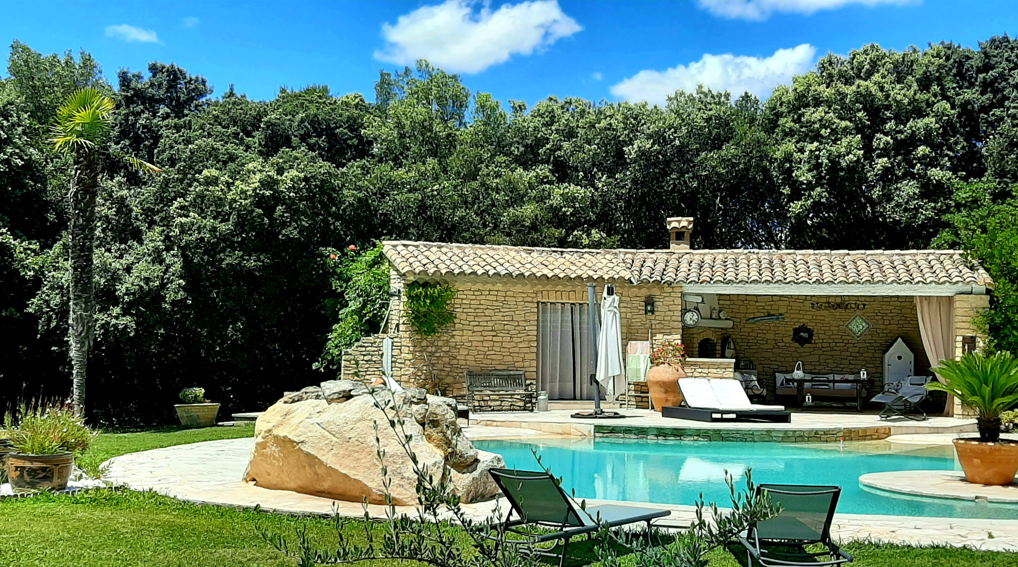 D’inspiration provençale, la propriété développe environ 350 m² habitables et peut accueillir confortablement jusqu’à 12 personnes. À l’écart de la maison principale, un charmant chalet en bois entièrement rénové permet d’héberger 2 personnes supplémentaires, idéal pour profiter d’un moment de calme et de détente à l’ombre.