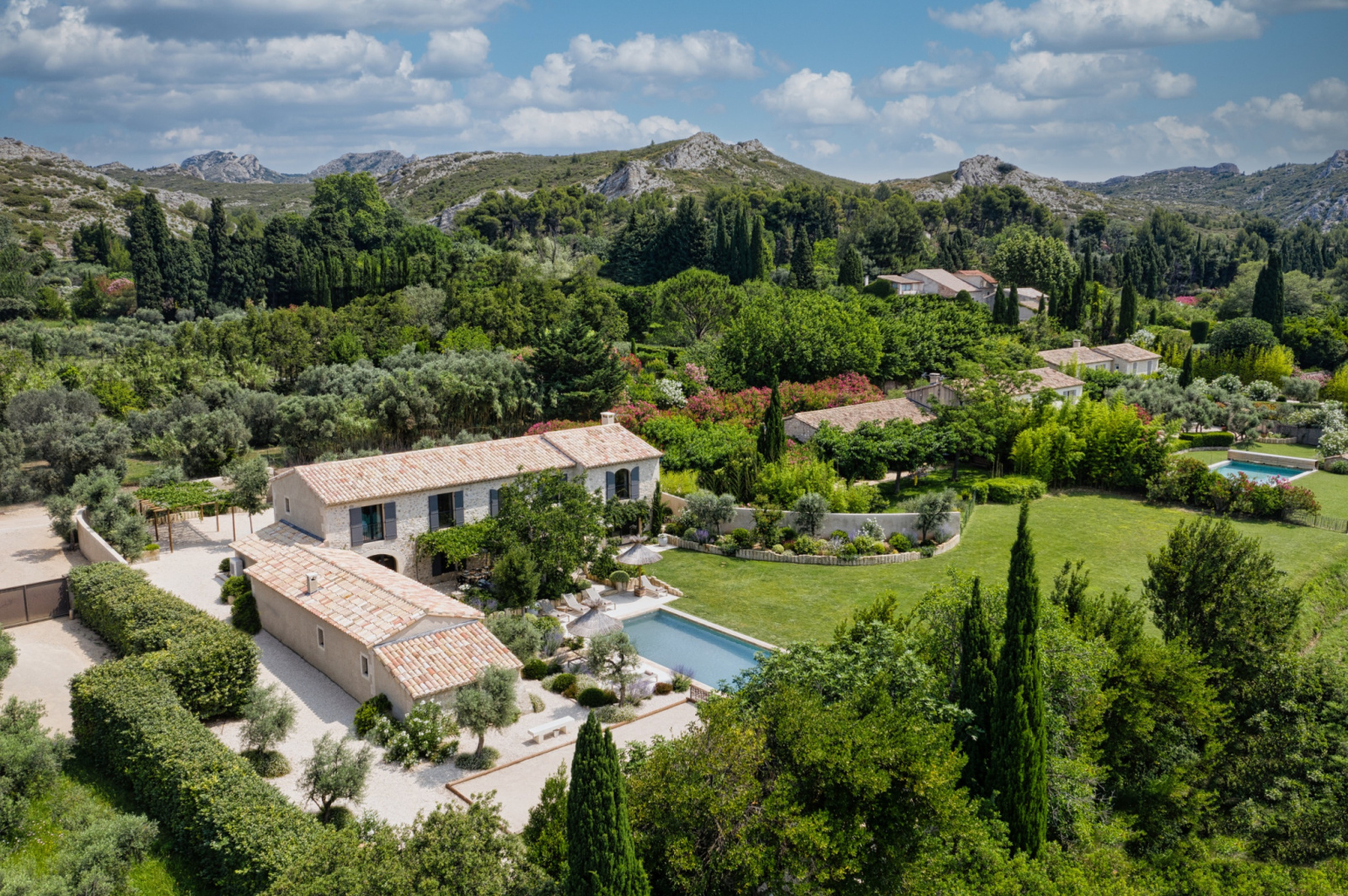 La propriété bénéficie d’un emplacement privilégié, à proximité du golf de Manville et en lisière de l’une des plus belles vallées du massif des Alpilles. Bienvenue au Destet, un lieu préservé au charme authentique.