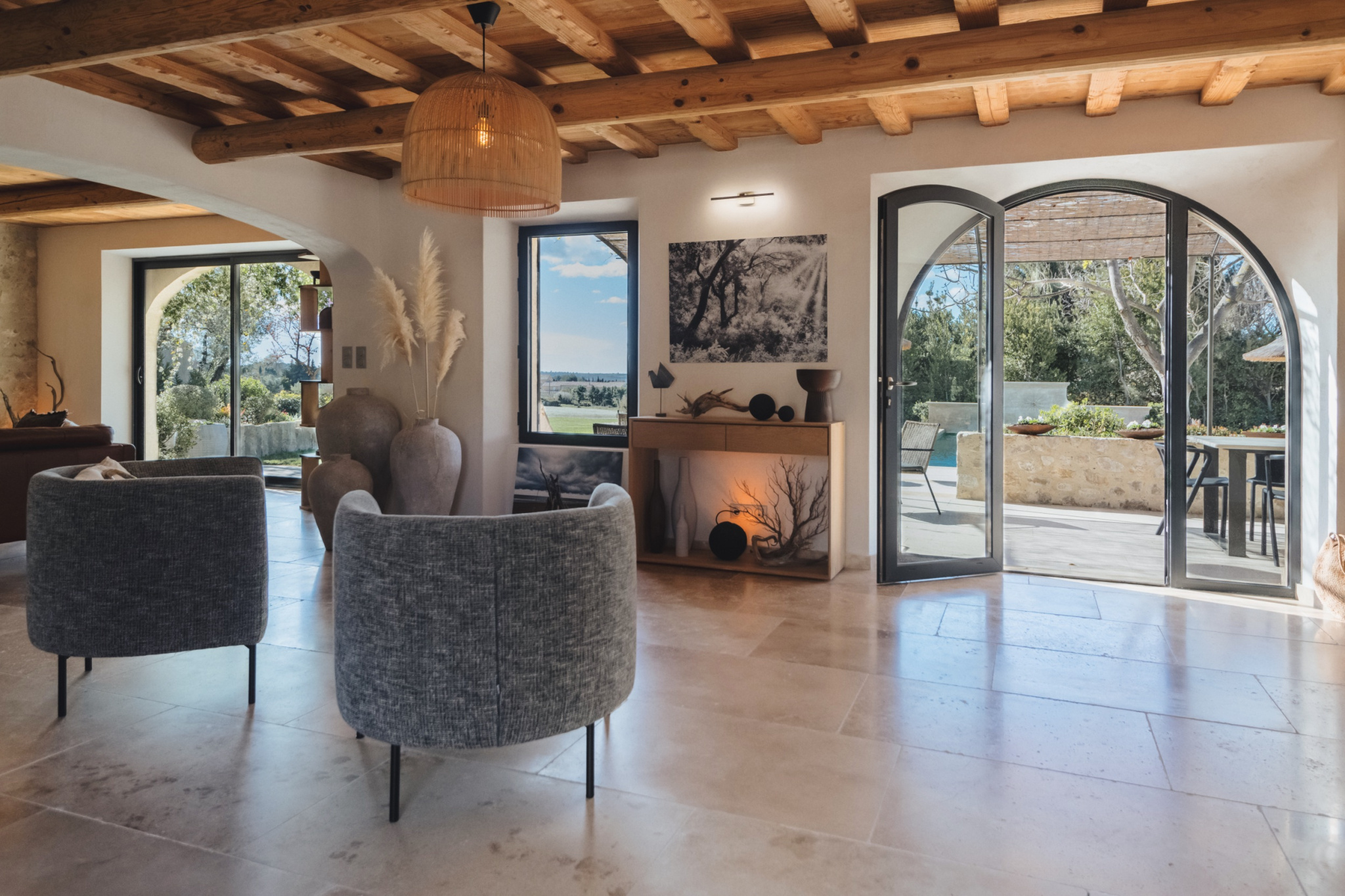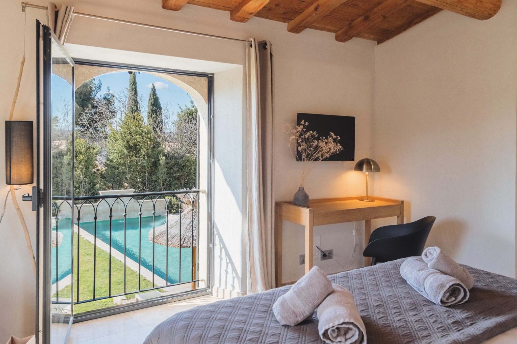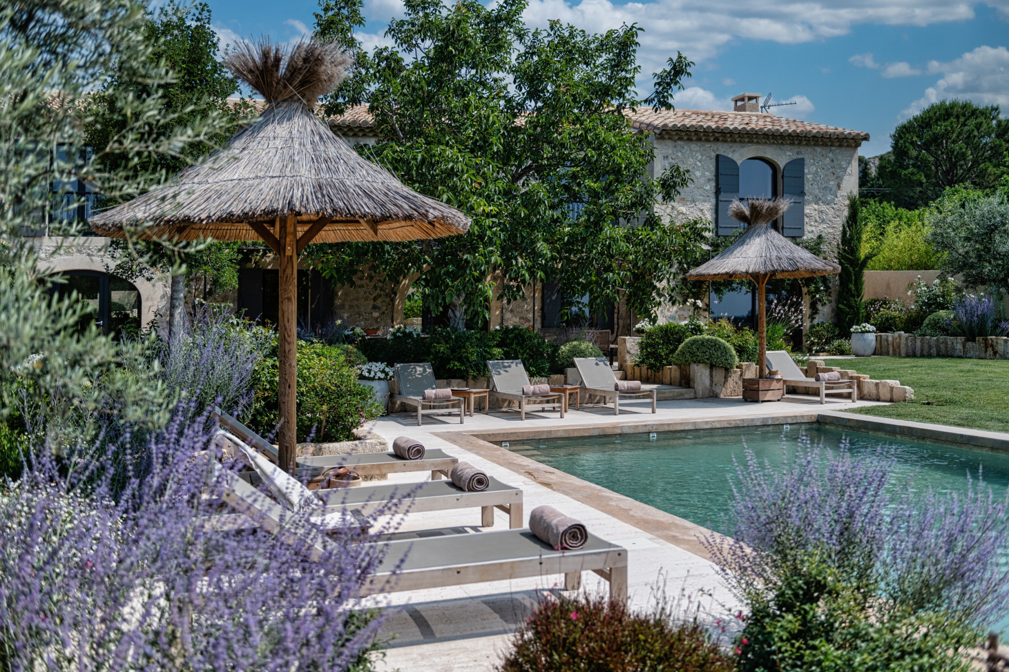 Pensée pour la douceur de vivre, la propriété s’ouvre directement sur une vaste terrasse idéale pour les repas en extérieur. Le jardin, joliment arboré et fleuri, accueille une piscine de (5x12,5m) ainsi qu’un agréable pool house avec salon de jardin et espace barbecue. Piscine chauffée, disponible sur demande (300 € par semaine).